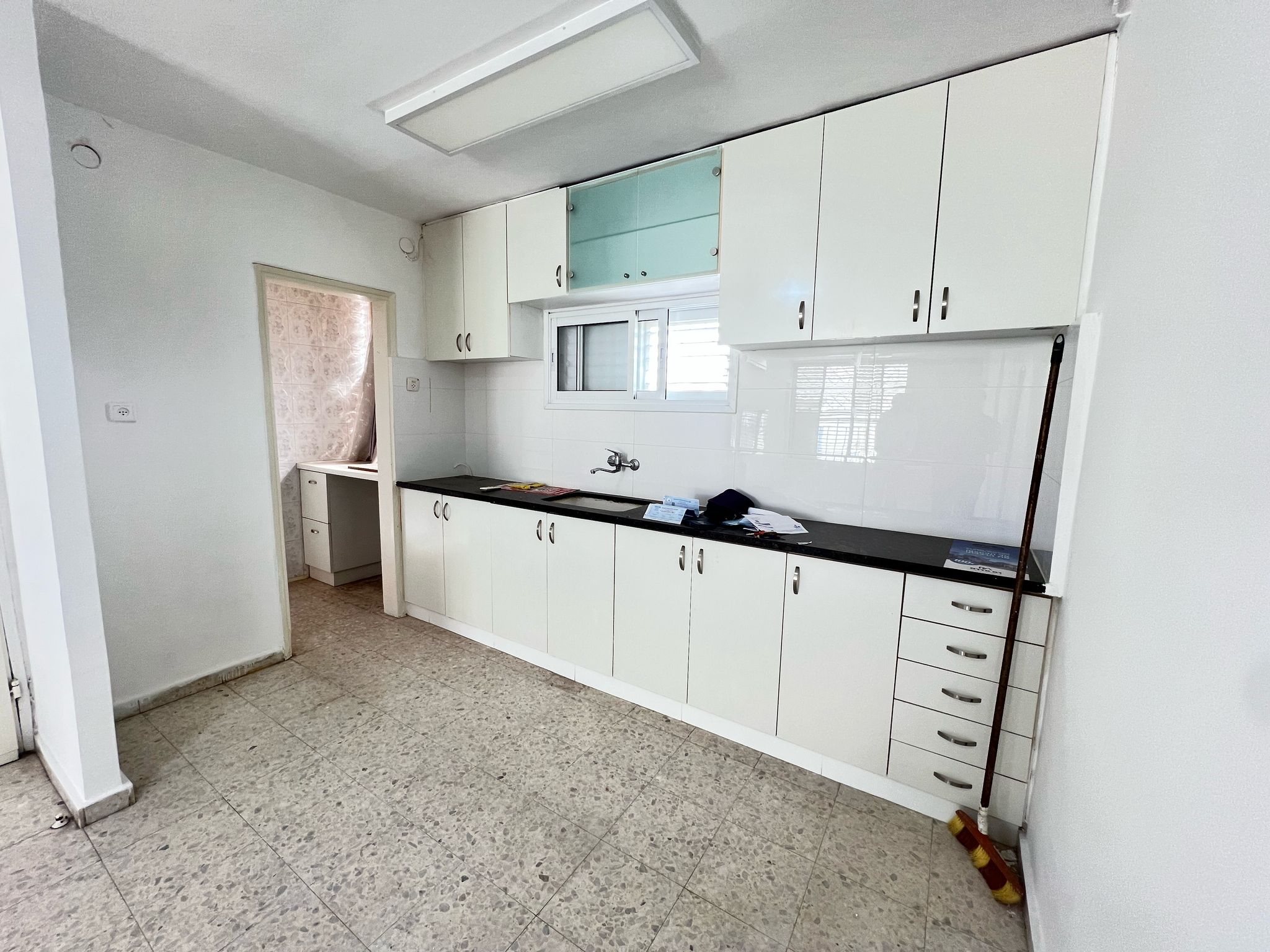 דירת 3 חדרים לוי אשכול. דירה ריקה ומסודרת, מזגנים, ארונות נשארים בדירה, סלון ומטבח מרווחים, פינת אוכל מוגדרת, כניסה מיידית